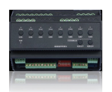 This is a lighting control module that can control up to four or eight ways. It has a surge resistance of over 170A at AC 250V and can withstand mechanical wear and tear for up to 10,000,000 cycles. The module is designed for easy installation on a standard 35mm guide rail.